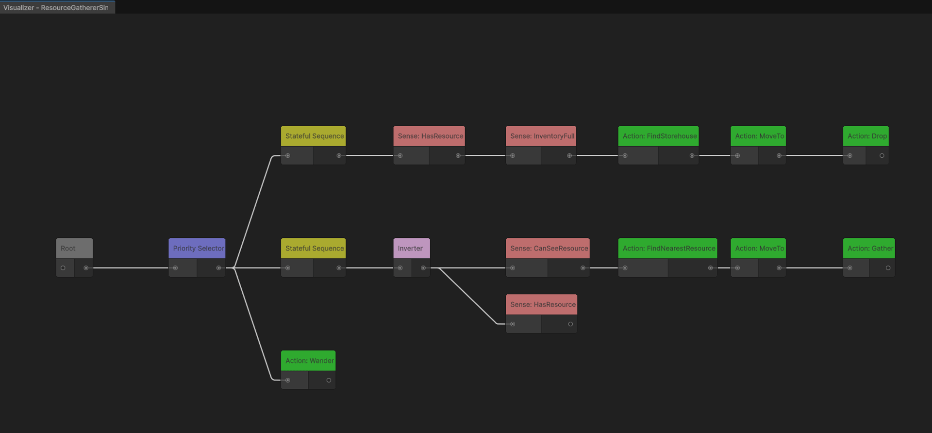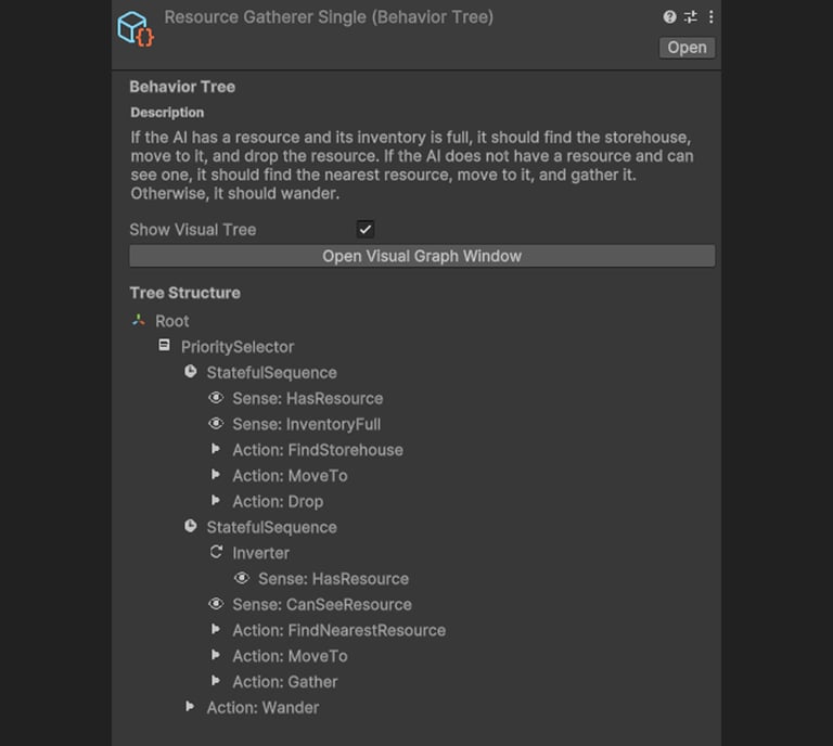 - Visual Behavior Tree Editor: Built-in visualizer shows tree structure and real-time execution