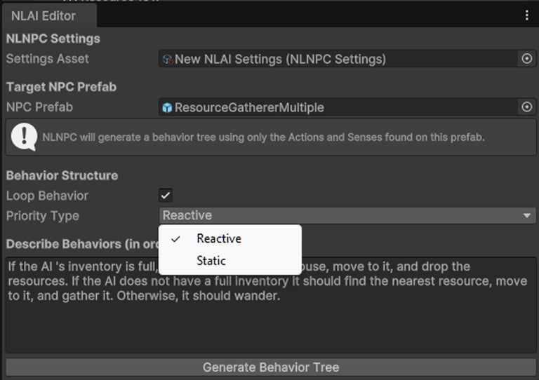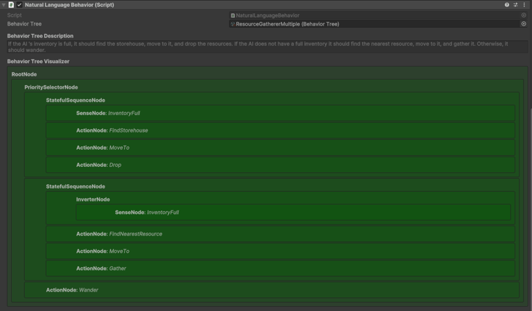 NLNPC allows you to use LLM's to create complex and configurable behavior trees based on your own modular scripts without having to build the trees yourself